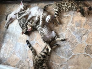 なんとなく、スノーとブラウンに分かれて遊んでいたりまったりしたりの子猫達(*'▽')