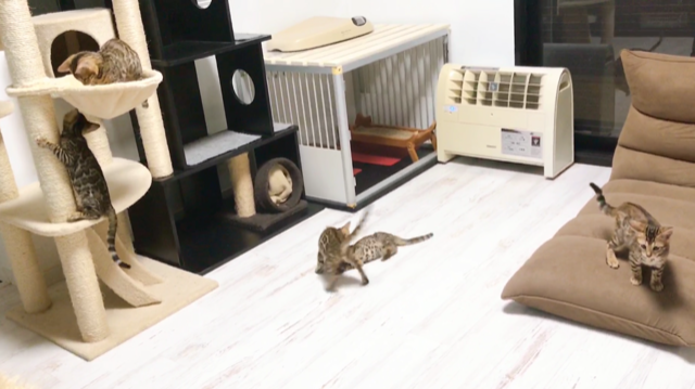 昼間はとても静かな子猫部屋も、朝晩はとても賑やかです♪
