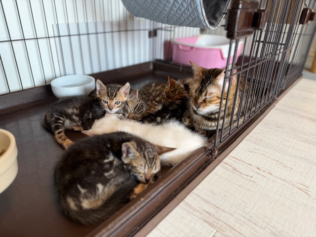 日中はポカポカと暖かくなってまいりました。 子猫さん達は今日も元気です。 食欲の春ってあるのかな?みんな本当によく食べます🍚 日々の成長が楽しみです💗