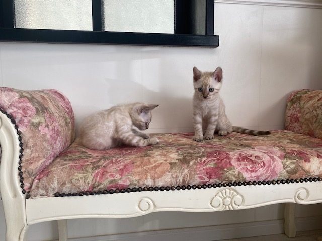 そろそろ爪切りしないと、布製品がボロボロにされちゃう~ でも、まだ子猫ちゃん達なので、タワーに登りずらくなるのも可哀想だし。。。