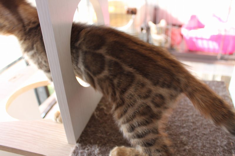 写真では少々暗めに映っていますが、実際の毛色は茶色いです。 ファジーな毛もだいぶ落ち着き、模様が綺麗に見えるようになりました。